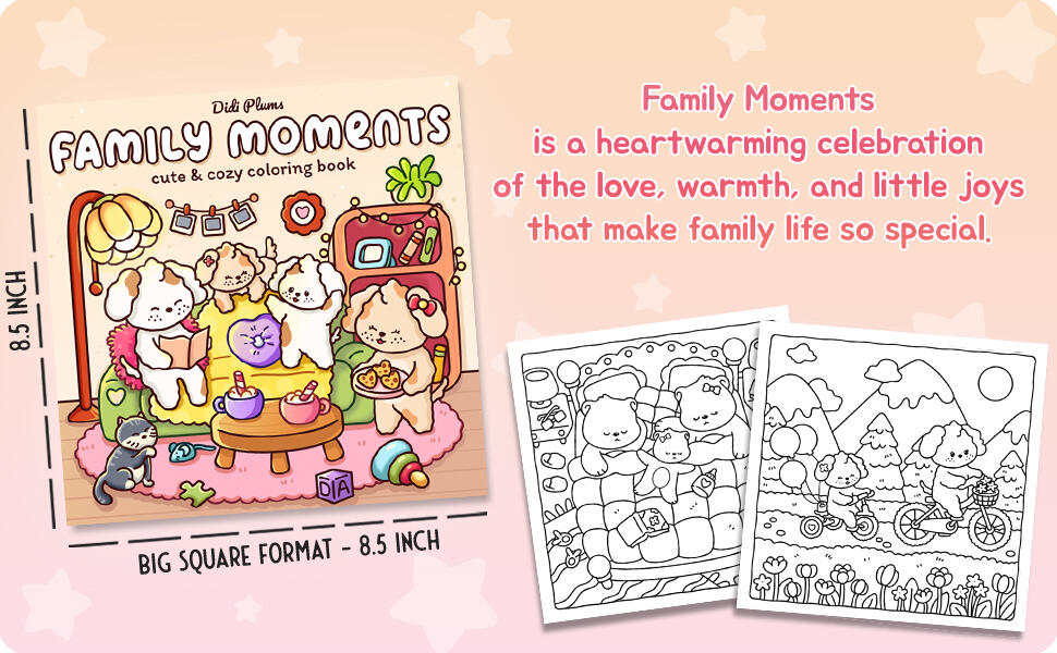 Family Moments celebrates the heartwarming bond between parents and their little ones—the cuddles, the chaos, and all the relatable little moments in between. Whether it's the joy of shared laughter, the sweetness of little babies reaching for comfort, or the simple happiness of just being together, these pages capture the magic of family life.Family Moments features:• 40 hand-drawn coloring pages.