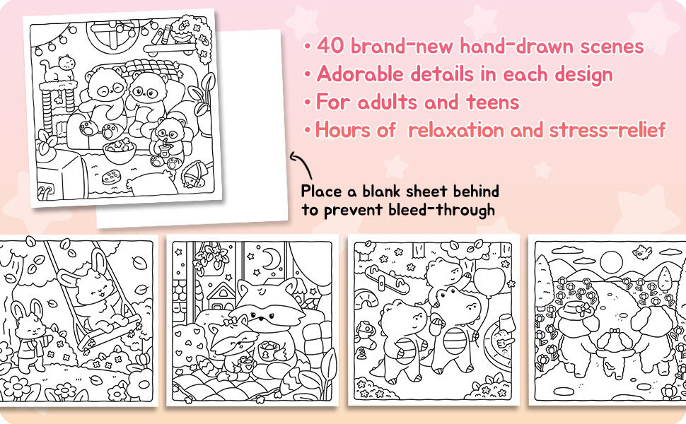 • Single-sided pages (prevents bleed-through) - (when using markers, please put a blank sheet behind the page you are coloring).